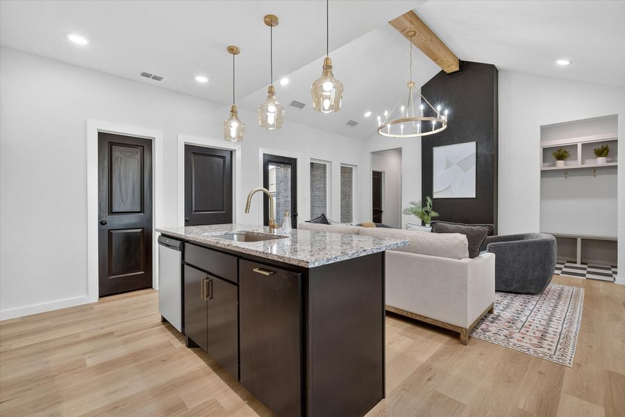 The open‑concept floor plan features clean architectural lines, elevated finishes, and abundant natural light that creates a warm yet contemporary atmosphere. The spacious living area flows seamlessly into the kitchen and dining spaces, making it ideal for everyday living and effortless entertaining.